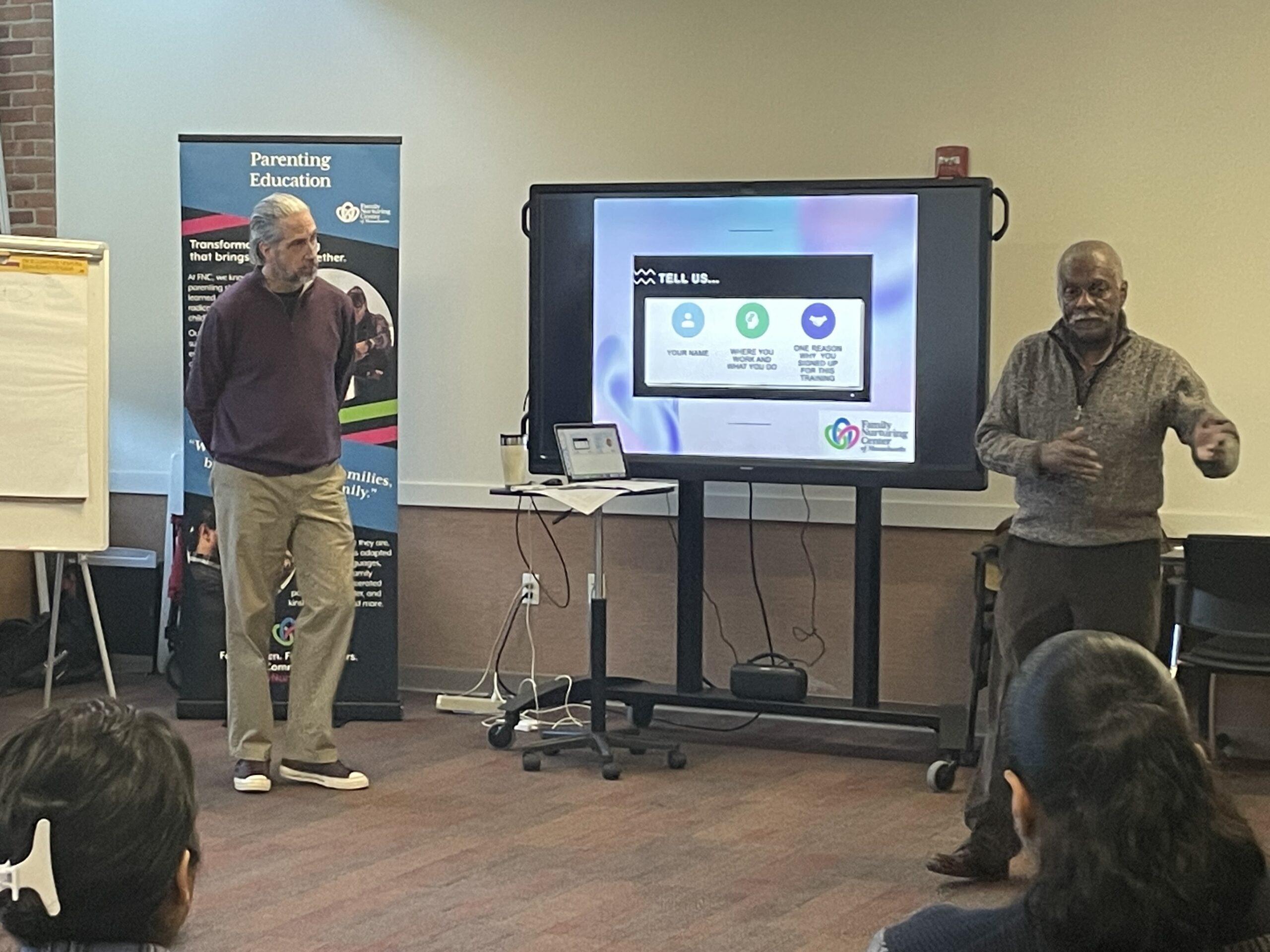 John O’Neil and Paul Toruño Melville from the Family Nurturing Center of Massachusetts recently held a Nurturing Fathers’ Program facilitator training at the Department of Children and Families’ (DCF) Northern Regional Office.